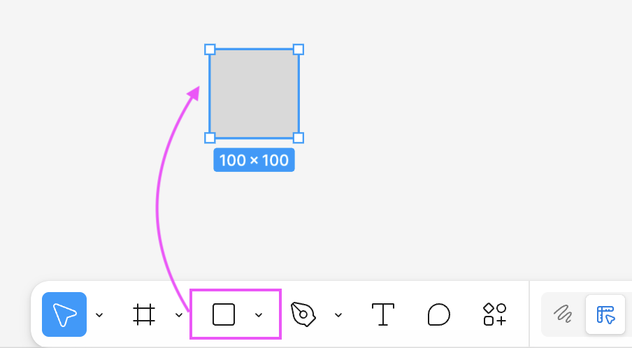 ツールバーにある四角形のアイコン(□) が図形ツールです。
