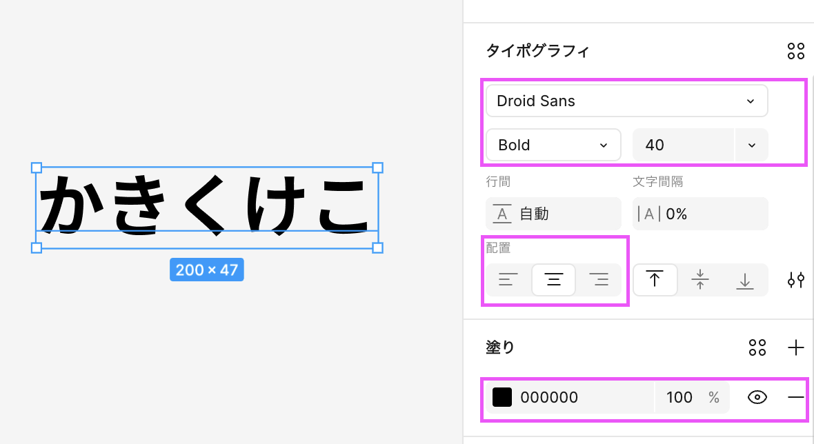 アイコンをクリックし、キャンバス上でクリックするとテキストボックスのオブジェクトが作成されます。 テキスト内でエンターを押せば改行されます。テキストの見た目の変更